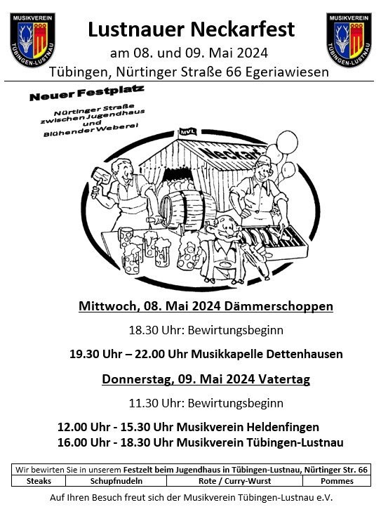 Wir sind noch auf der Suche nach Helfern für unser Neckarfest, insbesondere für Donnerstag 09.05.2024 ab 15:00 Uhr, für den Aufbau Montag 06.05.2024 ab 18:00 Uhr und den Abbau am Freitag 10.05.2024 ab 8:00 Uhr. Auch wenn Sie kein Mitglied beim Verein sind würden wir uns auf ihre Mithilfe freuen, ohne fremde Mithilfe kann der […]