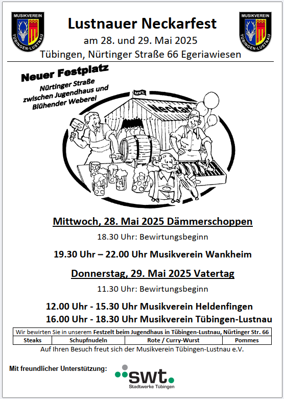 Wir sind noch auf der Suche nach Helfern für unser Neckarfest, insbesondere für Donnerstag 29.05.2025 ab 10:30 Uhr, für den Aufbau Samstag 24.05.2025 ab 10:00 Uhr und den Abbau am Freitag 30.05.2025 ab 8:00 Uhr. Auch wenn Sie kein Mitglied beim Verein sind würden wir uns auf ihre Mithilfe freuen, ohne fremde Mithilfe kann der […]