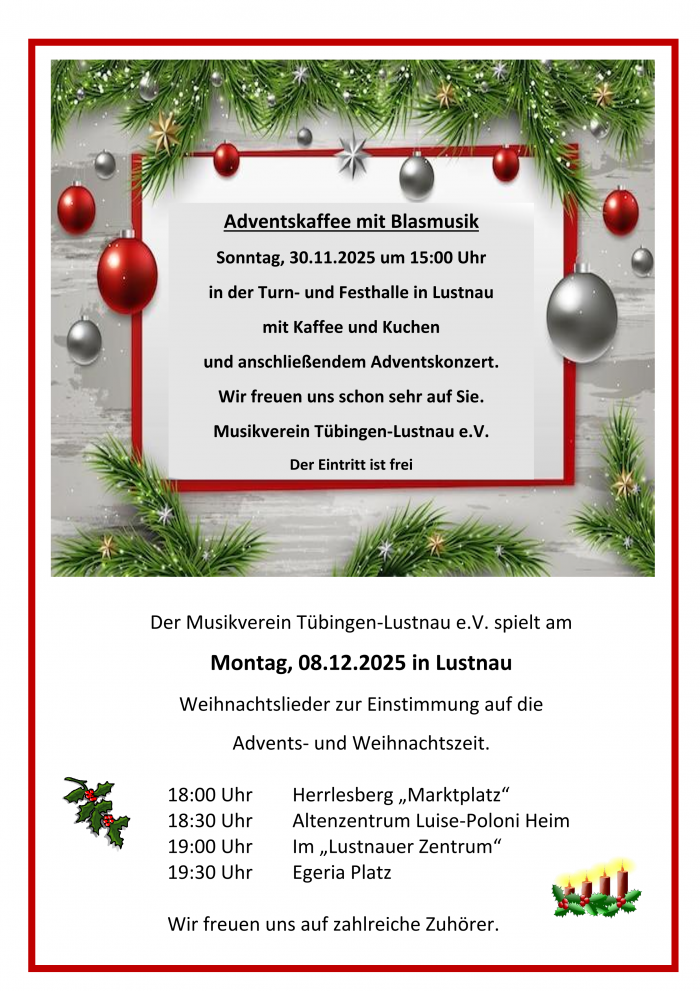 Neuer Dirigent im Musikverein Tübingen-Lustnau: Wir heißen Paul Tipple herzlich willkommen! Wir sind begeistert, einen so erfahrenen und engagierten Musiker für unser Ensemble gewonnen zu haben, und freuen uns auf die gemeinsame musikalische Reise. Paul kommt aus England und bringt nicht nur sein Wissen und seine Erfahrung als Dirigent mit, sondern auch eine beeindruckende musikalische […]